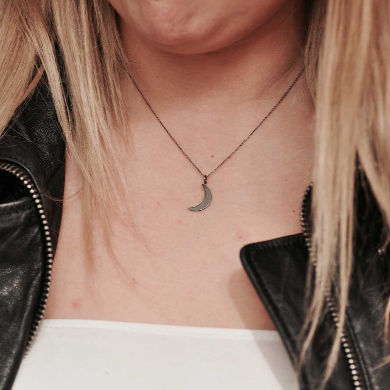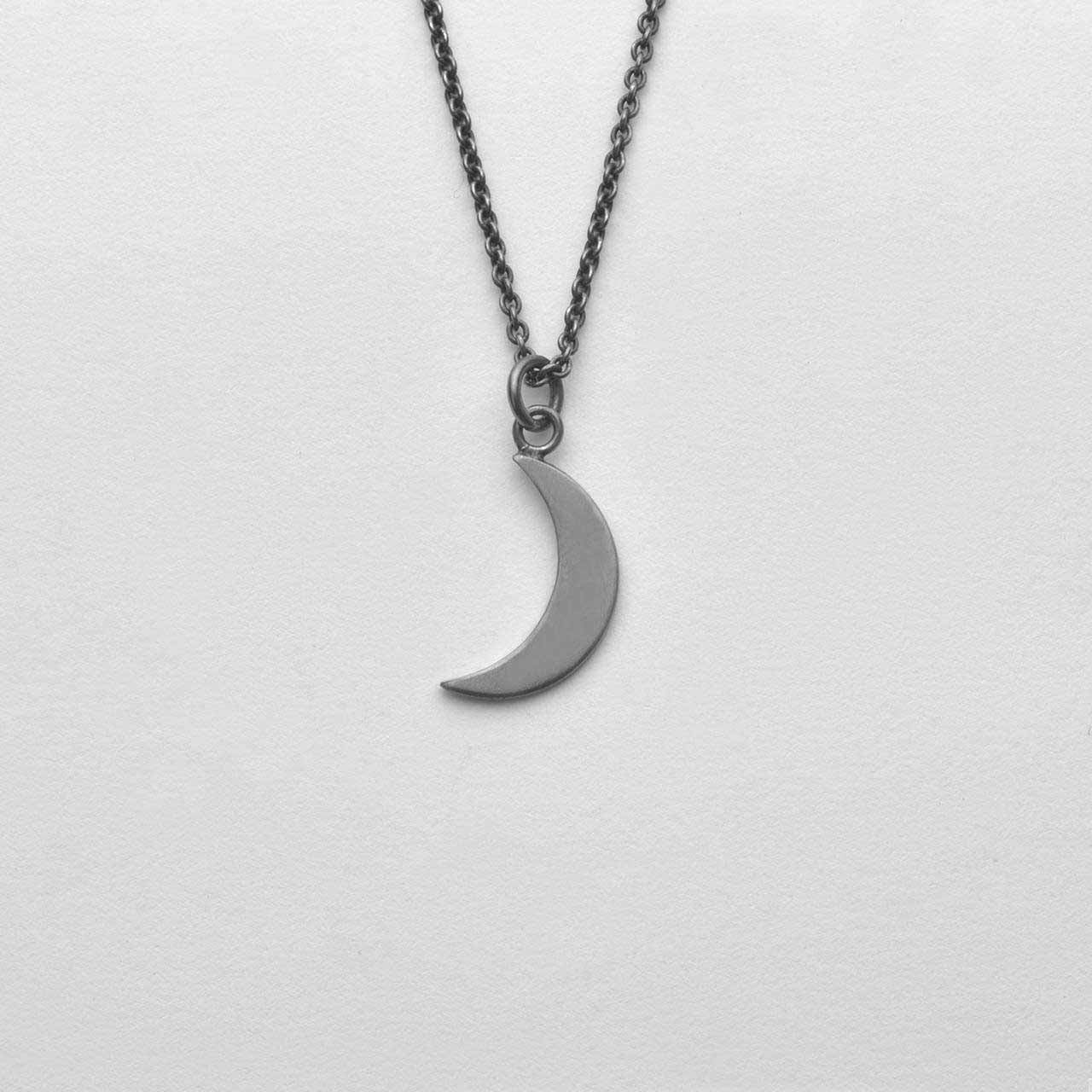 Handtillverkad stor måne i svartoxiderat 925 sterling silver som mäter ca 19 mm, inkl ögla 22,5mm. Säljs utan kedja, lägg till kedja under fliken -Kedjor.