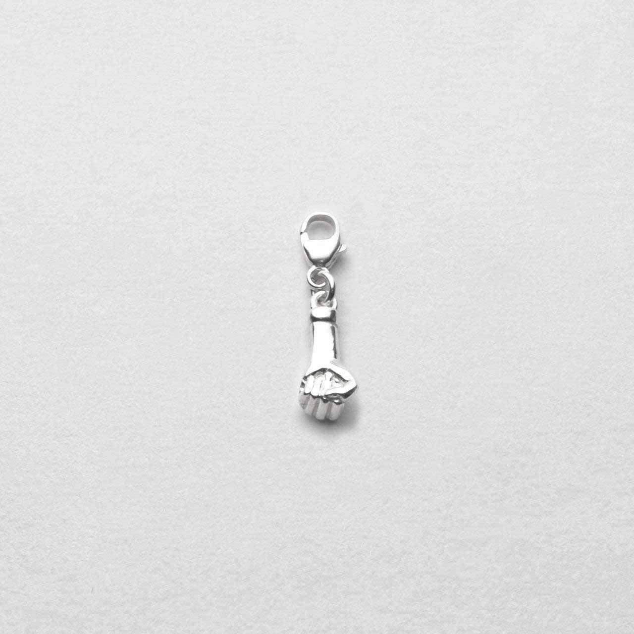 Knuten näve i 925 sterling silver med lås som kan fästas på ett berlockarmband.