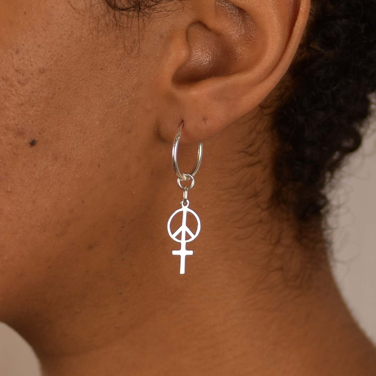 1st Örhänge med kvinnotecken kombinerat med fredstecknet.