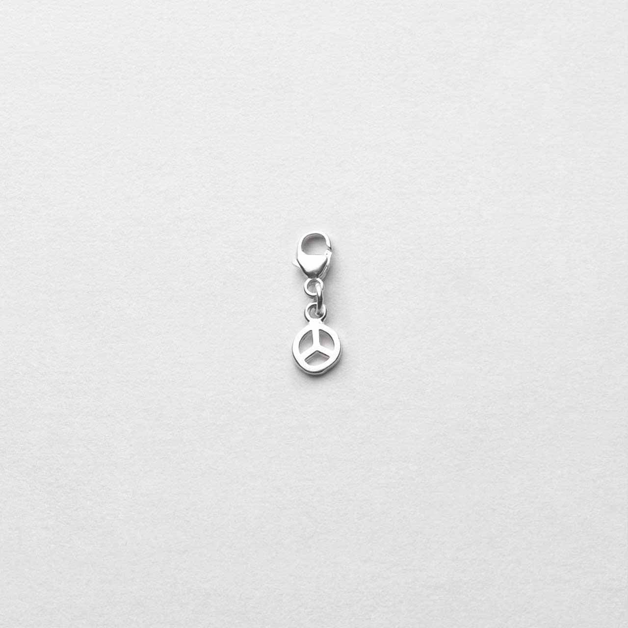 Liten fredssymbol i 925 sterling silver med lås som kan fästas på ett berlockarmband.