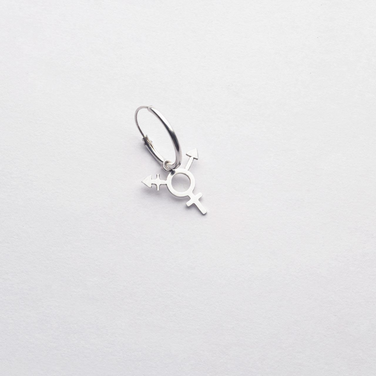 Handtillverkat örhänge med transsymbol i 925 sterling silver som hänger från en creol 16mm ø.