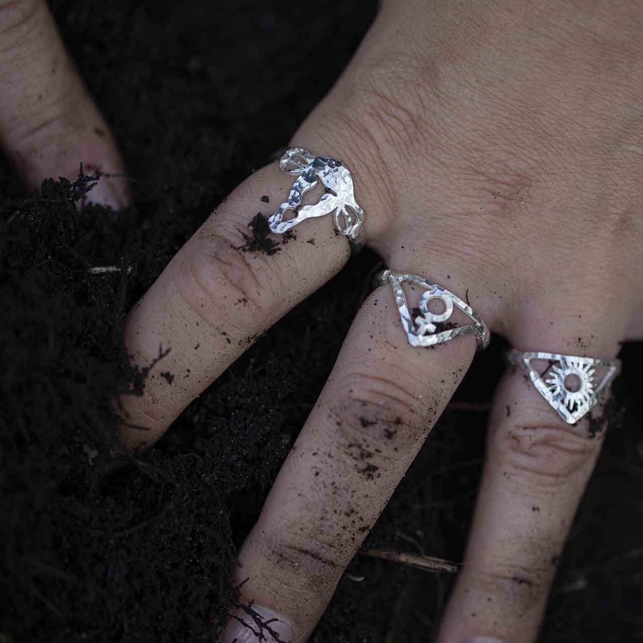 Denna livmoderring är en kraftfull talisman för den som bär den. Denna ring symboliserar den oändliga cykeln av liv och skapelse, där bäraren får en påminnelse om att hon bär livets källa inom sig. Ringen är en symbol för inre styrka, mod och skaparförmåga, ett smycke som både hyllar kvinnans kropp och de eviga kretslopp som binder henne till naturen.