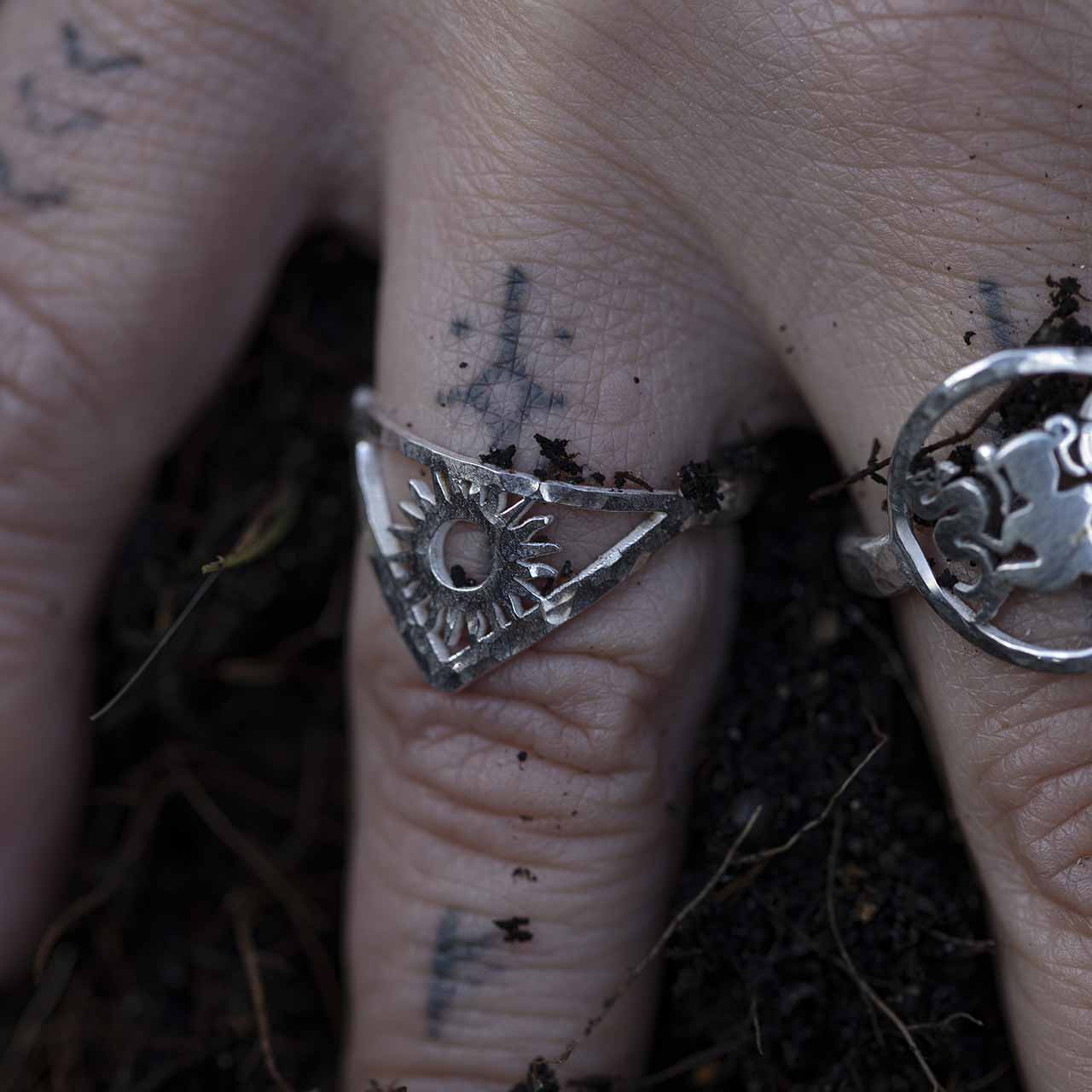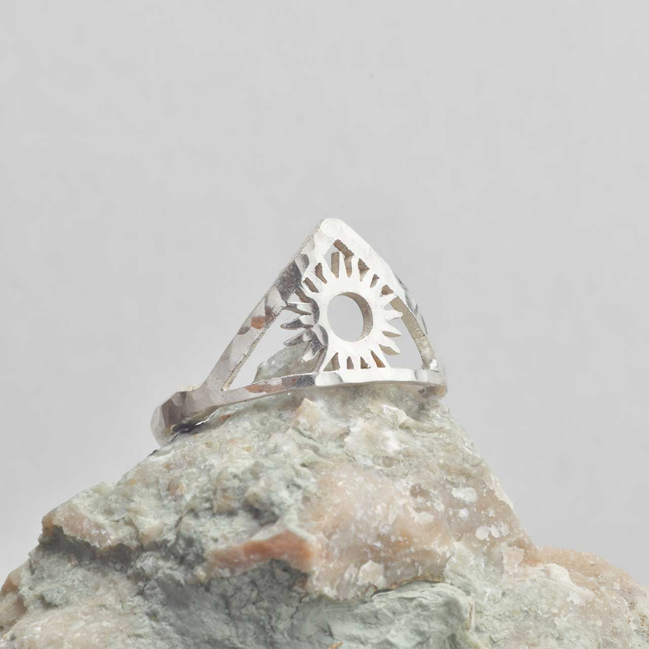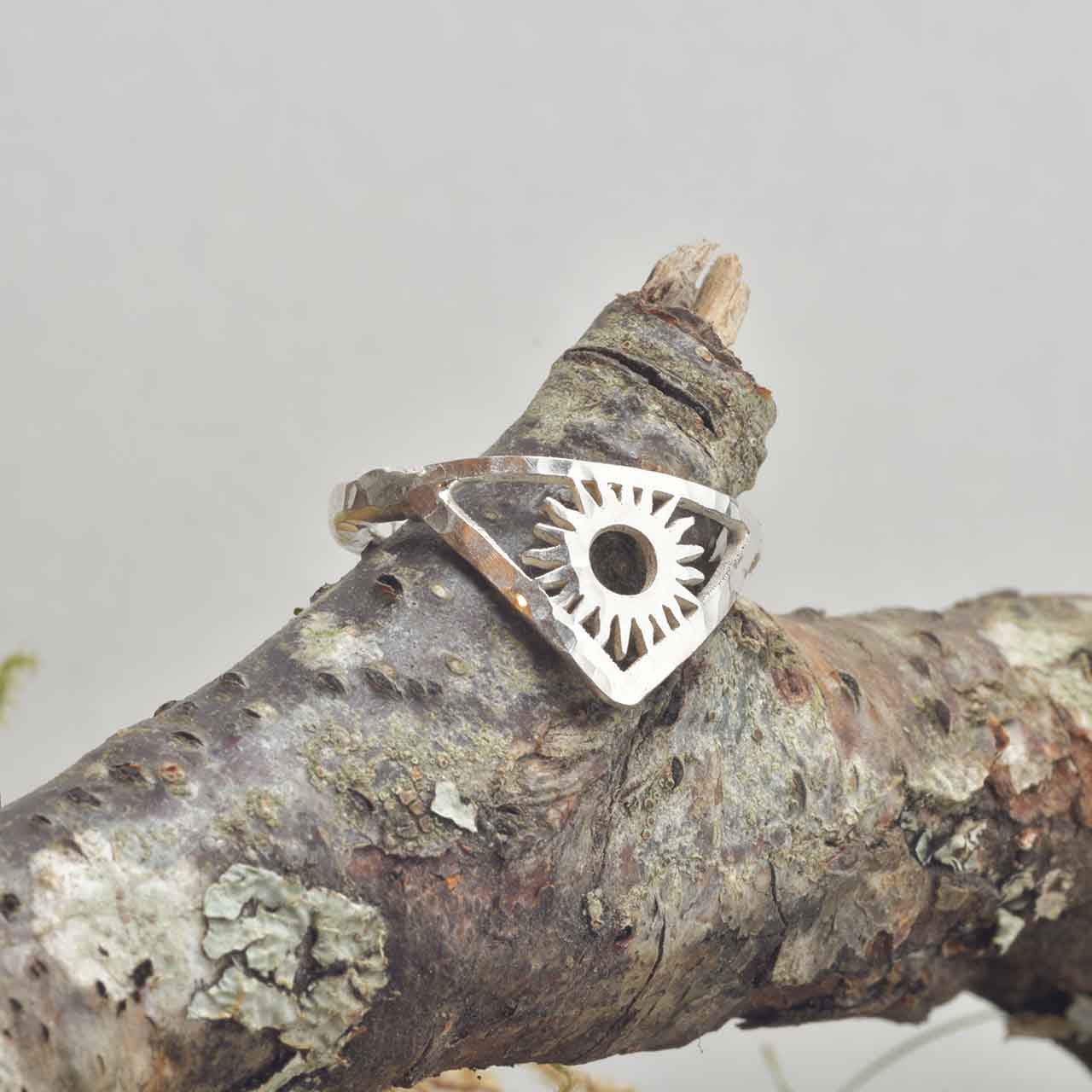 Solringen representerar livets kraft och energi, en påminnelse om den styrka och kraft som solen ger. Solens strålar ger bäraren mod och vitalitet. Handtillverkad i återvunnet 925 sterling silver.