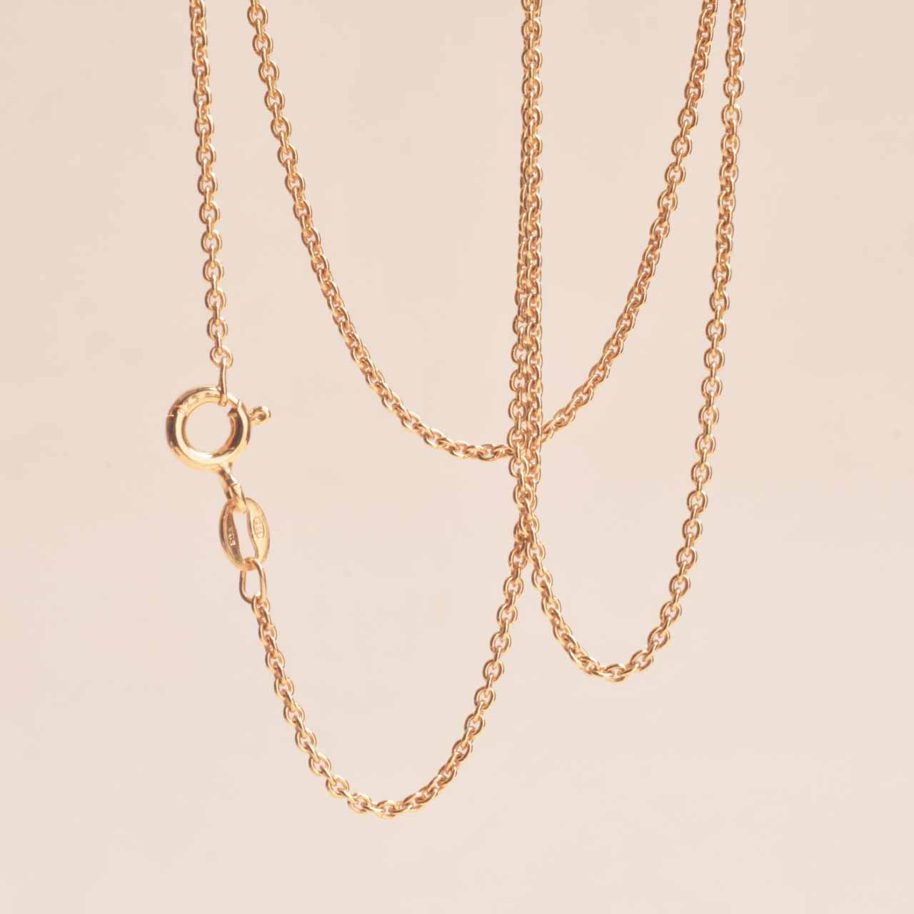 Gold-plated round anchor chain in 925 sterling silver 1.5mm ø. Choose length below. Price varies depending on length. Click on the length you want to see the price. Shown here with the Rosa pendant.